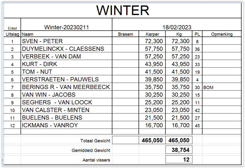 Uitslagen 2025 / 2024 / 2023 / 2022