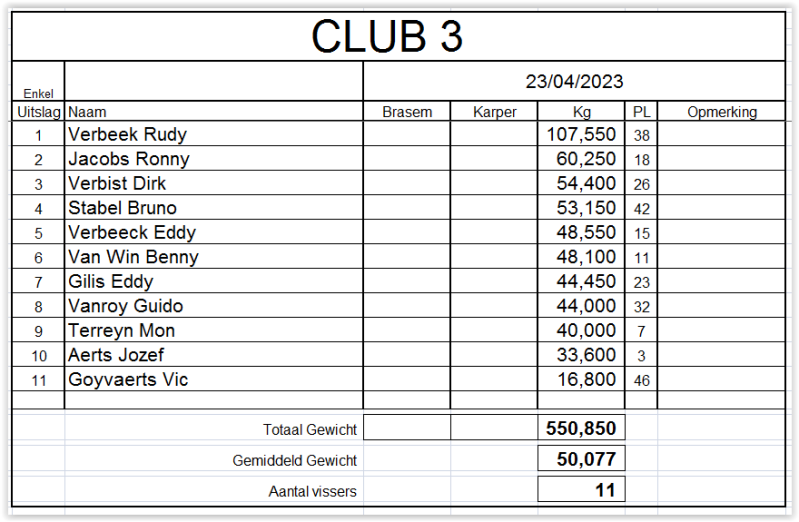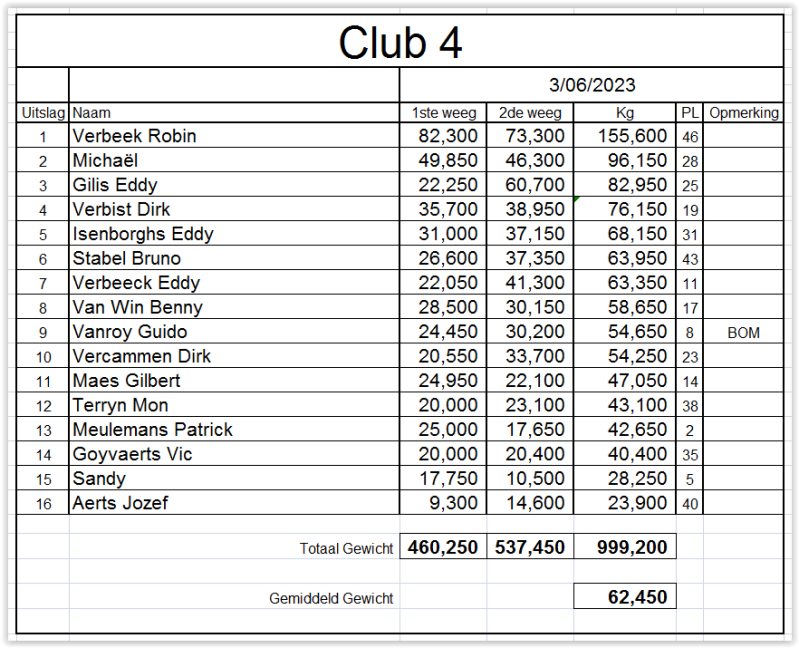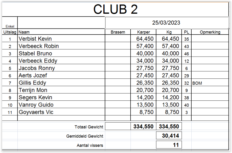 Uitslagen 2025 / 2024 / 2023 / 2022