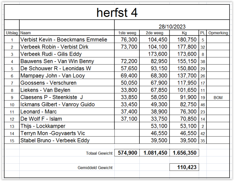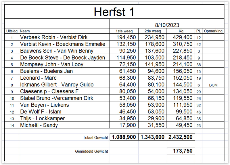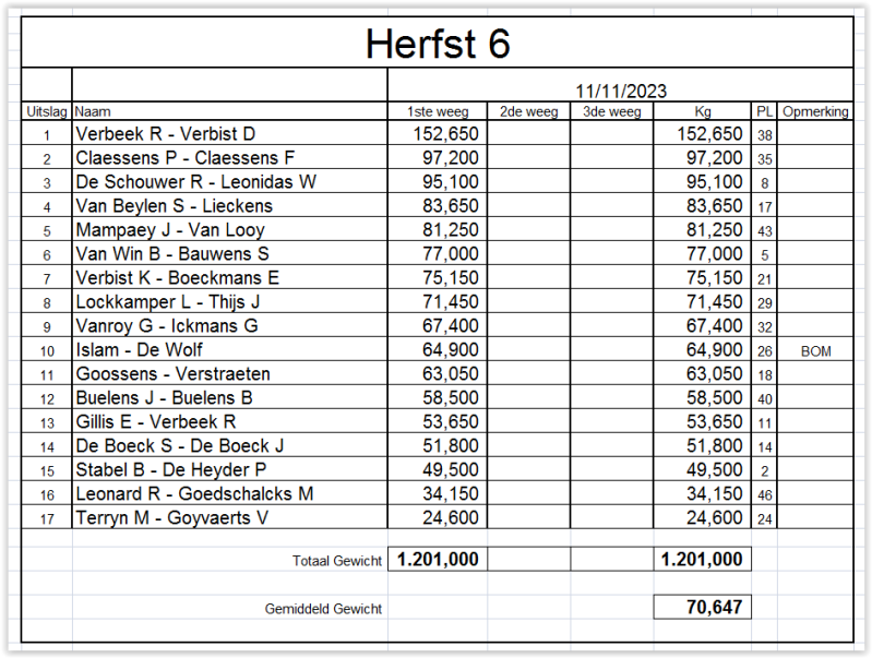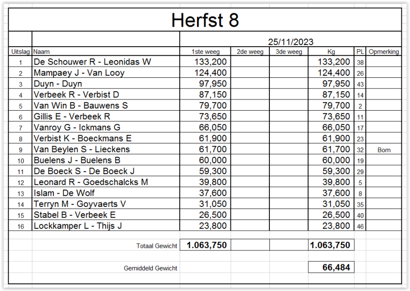 Uitslagen 2025 / 2024 / 2023 / 2022