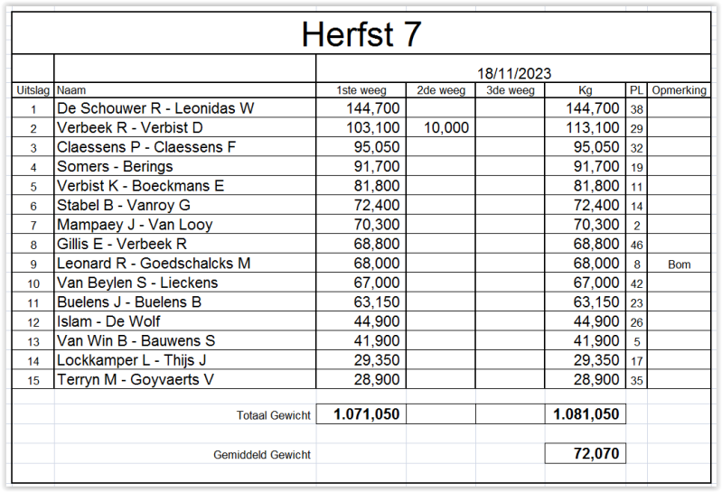 Uitslagen 2023
