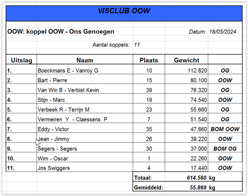 Uitslagen Club Uit