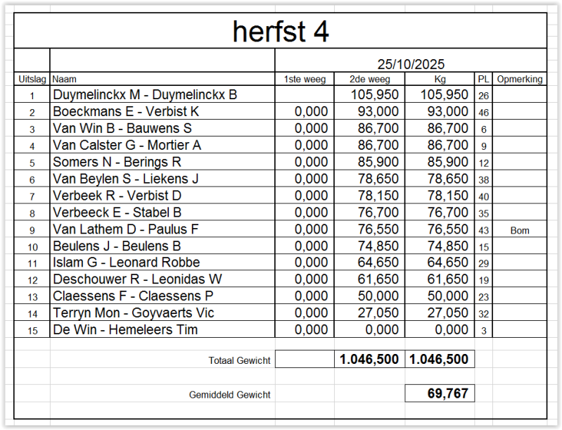 Uitslagen 2025 / 2024 / 2023 / 2022