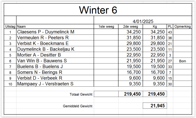 Uitslagen 2025 / 2024 / 2023 / 2022