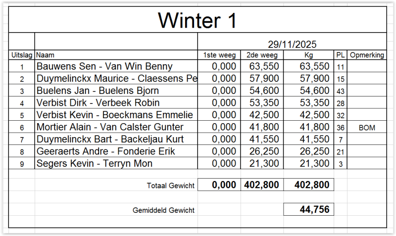 Uitslagen 2025 / 2024 / 2023 / 2022